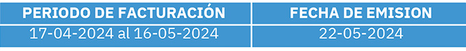 Luego verás un pequeño recuadro que te señala la fecha de inicio y término del periodo de facturación de esta boleta y su fecha de emisión: