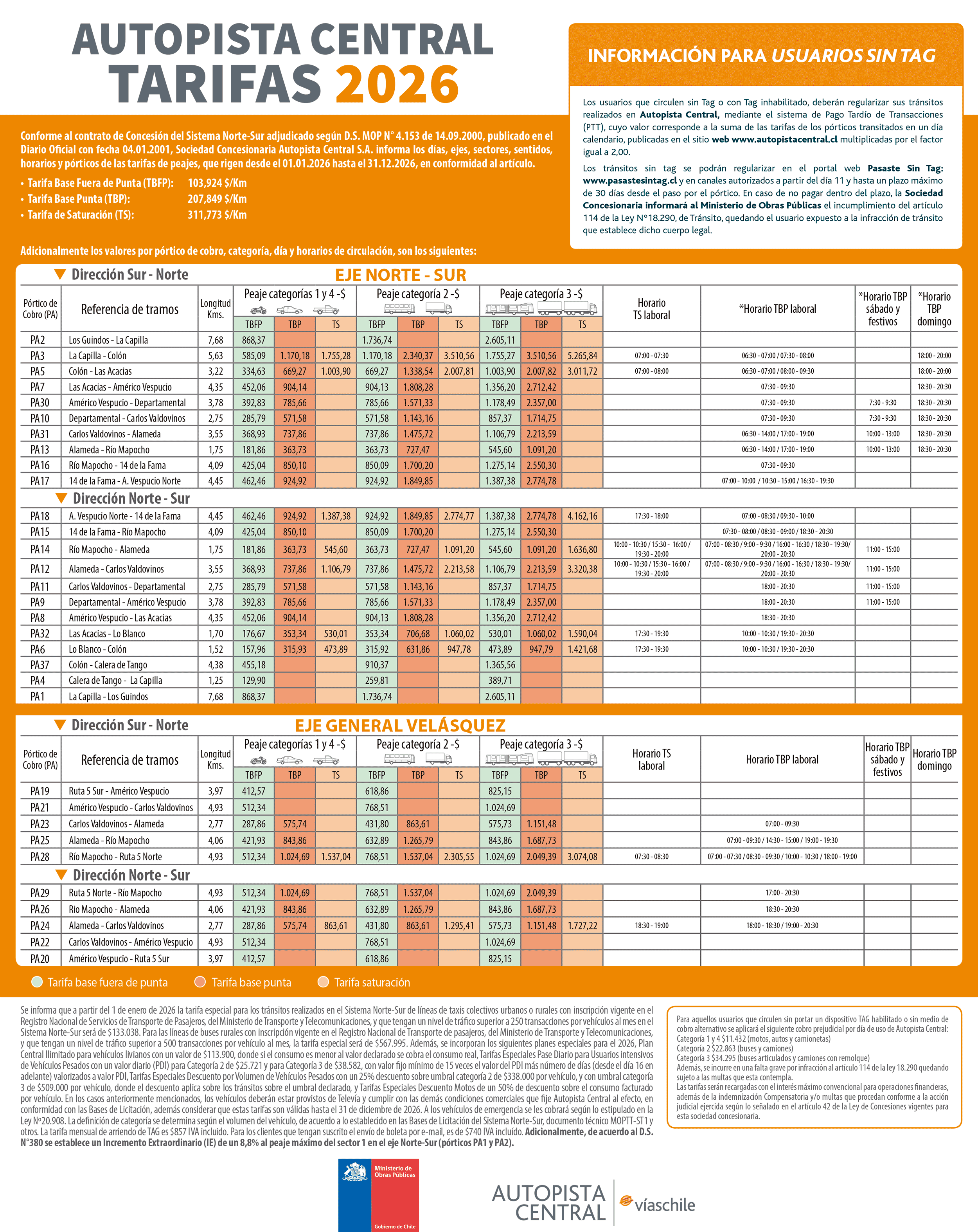 TARIFAS Autopista Central